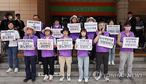 유가족들은 이날 선고에 앞서 피고인들의 엄벌을 촉구하며 서울시청에서부터 선고가 예정된 서울서부지법까지 약 2.9㎞를 행진했다.