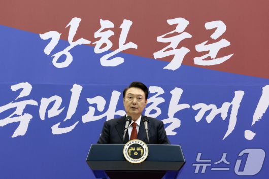 (서울=뉴스1) 송원영 기자 = 윤석열 대통령이 1일 성남 서울공항 국빈행사장에서 열린 건군 76주년 국군의날 경축연에서 축하의 말을 하고 있다. (대통령실 제공) 2024.10.1/뉴스1sowon@news1.krCopyright ⓒ 뉴스1. All rights reserved. 무단 전재 및 재배포, AI학습 이용 금지.