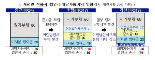 2023년 말 기준 영향분석 결과 보험회사의 배당가능이익은 3조4000억원 증가하고, 법인세 납부액은 9000억원 증가할 것으로 추정됐다.