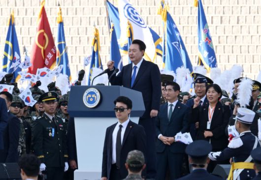 윤석열 대통령이 건군 제76주년 국군의 날인 1일 서울 광화문에서 시가행진을 한 후 연설하고 있다. 성형주 기자 foru82@sedaily.com[ⓒ 서울경제, 무단 전재 및 재배포 금지]