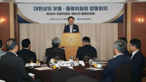 회의에는 정준호 대한상의 유통위원장(롯데쇼핑 백화점부문 대표), 신영수 물류위원장(CJ대한통운 대표), 박일준 대한상의 상근부회장을 비롯해 박진선 샘표식품 대표, 진재승 유한킴벌리 대표, 김재면 한국수퍼체인 유통업협동조합 이사장 등 유통·물류기업 최고경영자(CEO) 50여명이 참석했다.