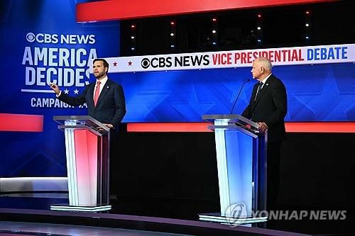 (샌프란시스코=연합뉴스) 김태종 특파원 = 미국 민주당 부통령 후보인 팀 월즈 미네소타 주지사와 공화당 부통령 후보인 J.D. 밴스 상원의원(오하이오)의 TV 토론이 열린 1일(현지시간) 조 바이든 대통령과 도널드 트럼프 전 대통령이 '장외 응원전'을 펼쳤다.