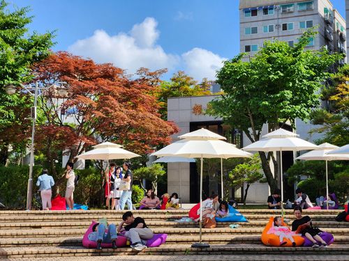 한국만화박물관 일대에는 대규모 야외 만화방이 차려졌다. 누구나 오가며 총 3천500여권의 만화책을 무료로 볼 수 있도록 조성한 공간이다.