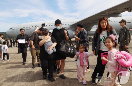 (서울=뉴스1) 사진공동취재단 = 이스라엘이 무장단체 헤즈볼라를 겨냥해 레바논에서 전방위적으로 공세를 강화하고 있는 가운데 레바논에 체류 중이던 우리 국민들이 5일 경기도 성남시 서울공항을 통해 도착해 군 수송기에서 내리고 있다. 2024.10.5/뉴스1 Copyright ⓒ 뉴스1. All rights reserved. 무단 전재 및 재배포, AI학습 이용 금지.