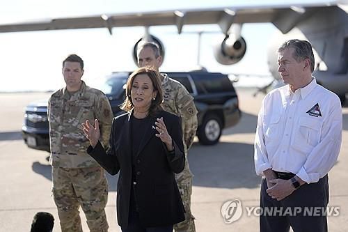 해리스 부통령은 이날 노스캐롤라이나주 샬럿을 방문해 피해 상황에 대해 보고 받고, 주민들과 대화를 나눴다.