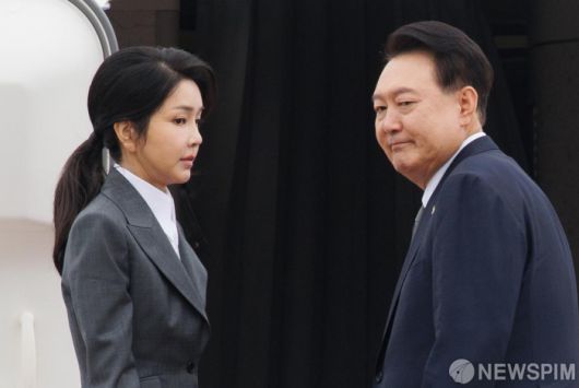 [성남=뉴스핌] 윤창빈 기자 = 필리핀, 싱가포르, 라오스 등 동남아 3개국 순방에 나선 윤석열 대통령과 김건희 여사가 6일 오전 경기 성남시 서울공항에서 출국을 위해 트랩에 오르고 있다. 2024.10.06 pangbin@newspim.com