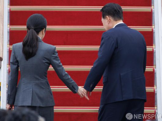 윤석열 대통령 손잡는 김건희 여사