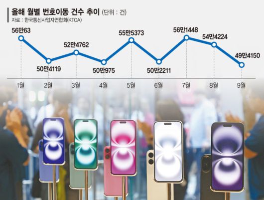업계 관계자는 "지난 7~8월은 갤럭시Z폴드6·플립6 출시로 번호이동 시장이 활성화된 반면 9월은 번호이동 건수가 줄긴 했다"며 "다만 아이폰16은 초도 물량이 적어서 작년 대비 적게 팔렸다고 보기는 어려운 상황"이라고 밝혔다.