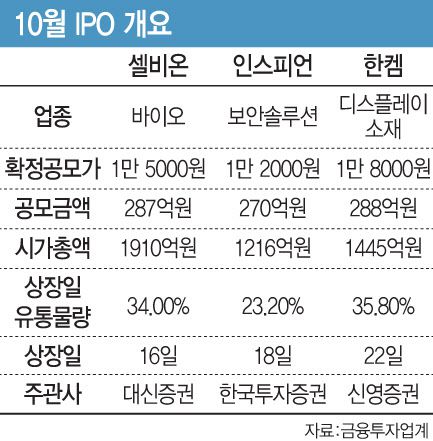 [이데일리 이정현 기자] 셀비온과 인스피언, 한켐이 오늘(7일)부터 일반공모를 시작한다.