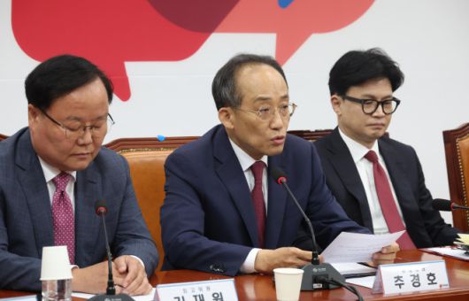 추 원내대표는 또 "민주당이 신성한 국회를 범죄자 이화영 전 경기도 평화부지사의 변론장으로 만들려고 했지만 혹 떼려다가 혹을 붙인 것 같다"고 지적했다.