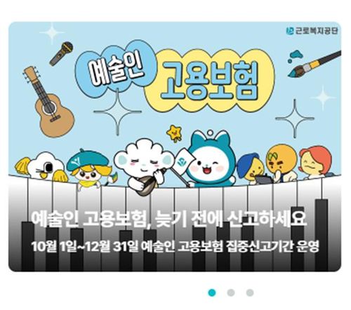 (서울=연합뉴스) 고미혜 기자 = 근로복지공단은 예술인 고용보험 가입을 촉진하기 위해 연말까지 집중신고기간을 운영한다고 7일 밝혔다.