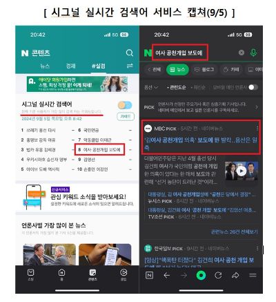 이 의원은 해당 서비스가 네이버의 실시간급상승검색어 서비스와 동일한 키워드 검색 원리로 작동하고 '시그널 실시간 검색어' 클릭 시 해당 키워드의 검색 결과가 아닌, 네이버 뉴스 페이지로 인링크(In-link) 처리돼 정치권 등 특정 세력의 '좌표 찍기'로 인한 여론 조작이 가능하다고 지적했다.