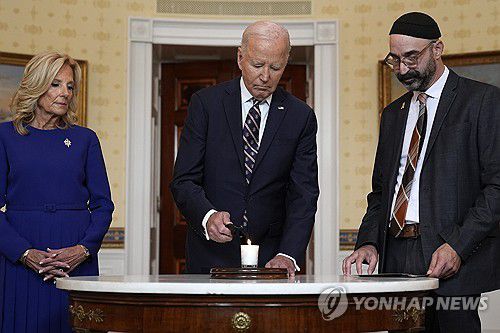 이날 바이든 대통령은 질 바이든 여사와 함께 백악관에서 테러 공격 희생자들을 추모하는 유대교 촛불 점등 의식에 참여했다.