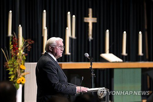 슈타인마이어 대통령은 가자지구 전쟁 발발 1년째인 이날 베를린 빌헬름황제 추모교회에서 열린 기념식에서 "유대인의 고향이 공격받고 이스라엘의 안보와 존립이 위협받을 때 이스라엘 편에 서는 것도 독일의 책임"이라며 이같이 밝혔다.
