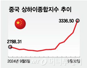 중국 증시에 대한 시장의 기대감은 아직 유효하다. 골드만삭스는 5일 투자노트를 통해 중국 주식에 대한 투자 의견을 '비중 확대'로 제시하고, 중국 당국이 부양 조치를 이행하면 증시가 추가로 15~20% 더 오를 수 있다고 내다봤다.