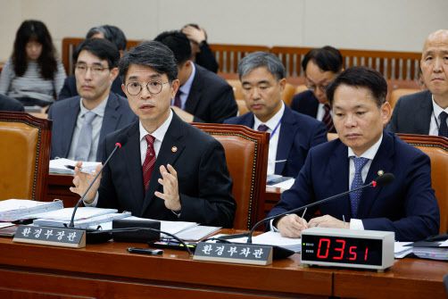 김완섭 환경부 장관이 8일 오전 서울 여의도 국회 환경노동위원회에서 열린 환경부에 대한 국정감사에서 의원 질의에 답하고 있다. (사진=뉴스1) |
