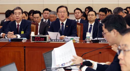 박 의원은 “항소심에서 징계절차가 일부 위법하다는 걸로 징계 처분이 취소됐다. 그런데 법무부가 상고를 포기한다. 조 이사장님이 상고포기 의견을 냈나”라고 질의했다. 이에 조 이사장은 “법무부에서 (상고포기 의견을) 통보받았다”라고 답변했다. 당시 법무부 검찰국장이었던 신자용 법무연수원장은 “법무실 소관이었다”라고 설명했다.