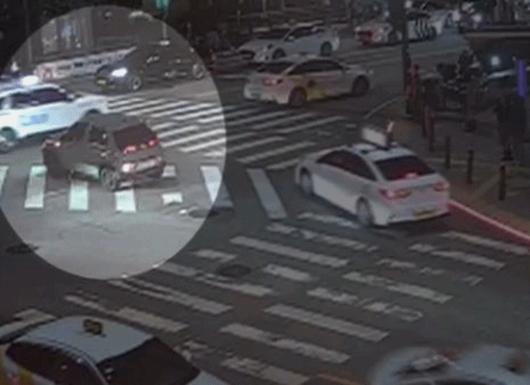 지난 5일 새벽 문다혜씨가 몰던 차량이 우회전 차로에서 좌측 방향지시등을 켜고 교차로에 진입하는 모습. 연합뉴스TV 보도화면 갈무리 |