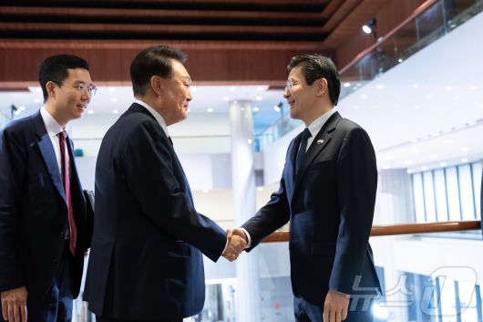 (서울=뉴스1) 박지혜 기자 = 윤석열 대통령이 8일(현지시간) 싱가포르 의회에서 열린 한·싱가포르 정상회담에 앞서 영접 나온 로런스 웡 싱가포르 총리와 인사를 나누고 있다. (대통령실 제공) 2024.10.9/뉴스1pjh2580@news1.krCopyright ⓒ 뉴스1. All rights reserved. 무단 전재 및 재배포, AI학습 이용 금지.