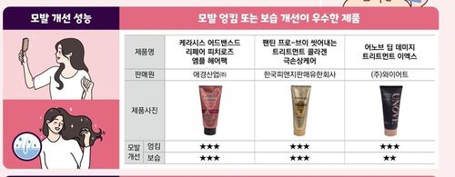 한국소비자원은 헤어트리트먼트 10개 제품의 모발 개선 성능과 사용감, 안전성, 환경성 등을 시험·평가한 결과를 9일 발표했다.