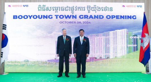 부영그룹이 캄보디아 프놈펜에 총 2만가구 규모 주상복합 아파트를 세운다. 이 가운데 1474가구 단지가 먼저 준공됐다. 부영이 캄보디아에 아파트를 선보이는 건 이번이 처음이다.