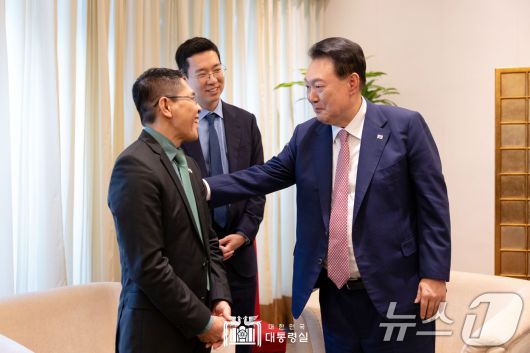 (서울=뉴스1) 송원영 기자 = 윤석열 대통령이 9일(현지시간) 싱가포르 창이 국제공항에서 환송나온 모하마드 말리키 빈 오스만 총리실 장관과 환담을 나누고 있다. (대통령실 홈페이지) 2024.10.10/뉴스1sowon@news1.krCopyright ⓒ 뉴스1. All rights reserved. 무단 전재 및 재배포, AI학습 이용 금지.