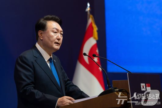(서울=뉴스1) 송원영 기자 = 윤석열 대통령이 8일 오후(현지시간) 싱가포르의 한 호텔에서 열린 한·싱가포르 비즈니스 포럼에서 박수를 치고 있다. (대통령실 제공) 2024.10.10/뉴스1sowon@news1.krCopyright ⓒ 뉴스1. All rights reserved. 무단 전재 및 재배포, AI학습 이용 금지.