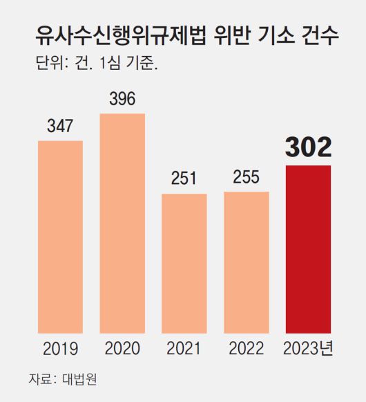 다단계 사기 사건은 최근 들어 다시 증가하고 있다. 대법원 사법연감에 따르면 지난해 다단계와 같은 불법 유사수신 혐의로 재판에 넘겨진 건수는 302건으로 2022년(255건)보다 18.4% 늘어났다. 코인 관련 유사수신 범죄가 많던 2020년(396건) 이후 감소하다가 다시 증가하는 추세다. 수도권 법원의 한 부장판사는 “다단계 사기는 대표적인 서민 범죄로 다수의 피해자에게 회복되지 않는 피해를 안기는 경우가 많다”며 “증가세가 더 커지기 전에 정부 차원의 사전 예방 대책이 필요해 보인다”고 말했다.