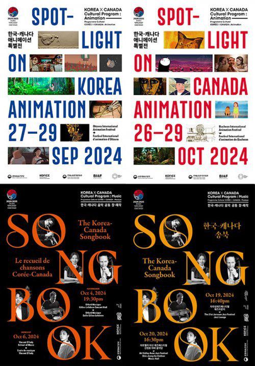 (위) ‘한국-캐나다 애니메이션 특별전’ 포스터. (아래) ‘한국-캐나다 음악 공동 창·제작’ 포스터 |