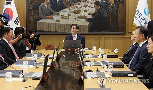 (서울=연합뉴스) 신호경 기자 = 한국은행 금융통화위원회(이하 금통위)는 11일 기준금리를 0.25%포인트(p) 낮춰 '피벗'(통화정책 전환)에 나서면서 물가·외환시장 안정, 가계부채 증가세 둔화 등을 근거로 들었다.