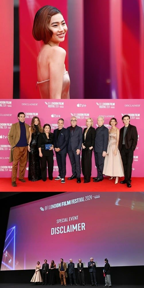 단발 헤어스타일링과 핑크빛 드레스를 완벽하게 소화하며 특유의 러블리한 무드로 레드카펫을 사로잡은 정호연의 모습에 뜨거운 플래시 세례가 이어졌다. 그는 '디스클레이머' 감독 알폰소 쿠아론과 주연 배우 케이트 블란쳇, 케빈 클라인, 사샤 바론 코헨, 루이스 패트리지, 레일라 조지 등과 함께 자리했다