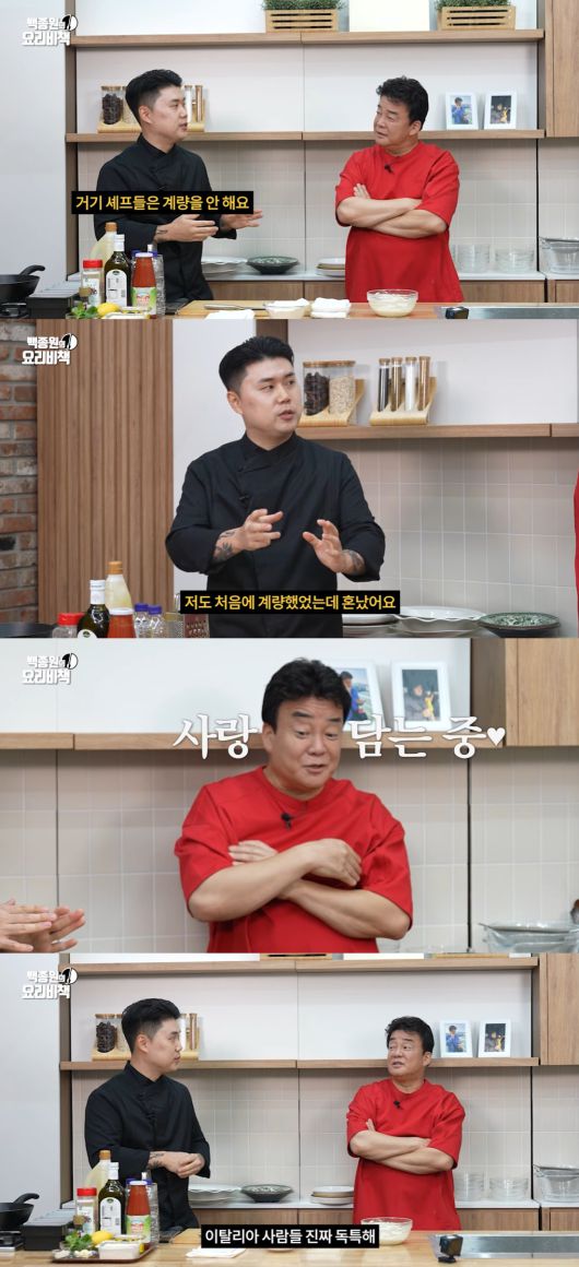 나폴리 맛피아는 "저도 이탈리아에서 미슐랭 2스타, 3스타에서 일했었다. 그런데 거기 셰프들은 계량을 안 한다. 근데 그때 일할때도 그 사람들은 계량 안했다"고 이야기했다.