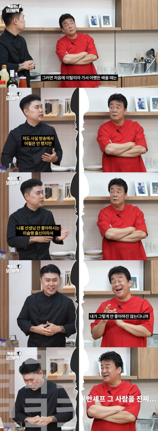 이를 들은 백종원은 "나 그렇게 안 좋아하진 않는다니까"라며 "안성재 셰프가 하도 사랑하니까 내가…"라고 발끈해 웃음을 안겼다.