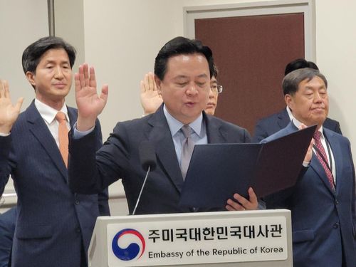 (워싱턴=연합뉴스) 조준형 박성민 특파원 = 조현동 주미대사는 11일(현지시간) 도널드 트럼프 전 미국 대통령이 내달 5일 대선에서 승리할 경우 최근 타결된 주한미군 방위비 분담금(주한미군 주둔 비용 중 한국의 분담액) 합의의 재협상을 요구할 가능성을 배제할 수 없다고 밝혔다.