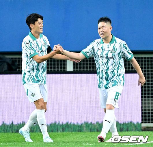 후반 팀 기성용 이청용과 감스트가 인사를 나누고 있다. 2024.10.12 / dreamer@osen.co.kr