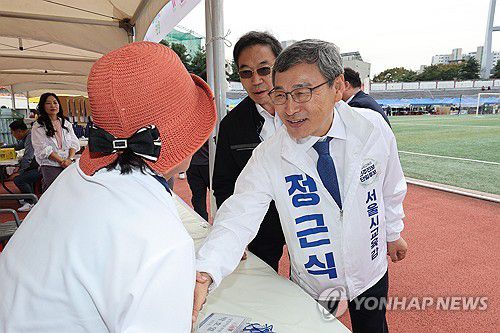 (서울=연합뉴스) 임화영 기자 = 정근식 서울시교육감 후보가 보궐 선거를 사흘 앞둔 13일 오후 서울 용산구 효창공원에서 열린 재경완도군향우회 정기총회 및 한마음축제를 찾아 유세하고 있다. 2024.10.13