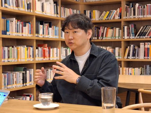 연합뉴스와 인터뷰하는 '지금 우리 학교는' 주동근 작가 |