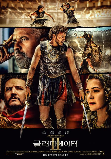 개봉 소식과 함께 전격 공개된 포스터는 검을 쥔 채 위용을 드러낸 새로운 검투사 ‘루시우스’ 역의 폴 메스칼이 시선을 사로잡는 한편 근엄한 자태가 인상적인 ‘아카시우스’ 역의 페드로 파스칼, 압도적인 아우라로 강한 권력욕을 드러내는 ‘마크리누스’ 역의 덴젤 워싱턴, 부드러운 카리스마를 완성한 ‘루실라’ 코니 닐슨까지 쟁쟁한 배우들의 합류로 궁금증을 더한다.