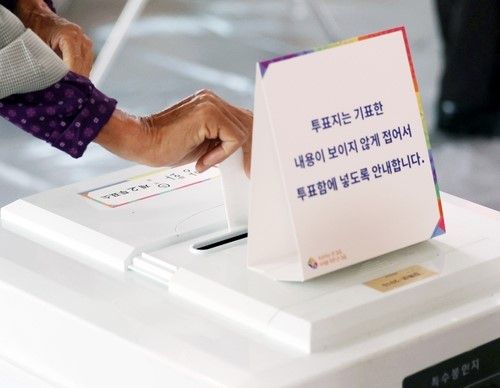 16일 유권자들이 강화군수를 뽑기 위해 소중한 한 표를 행사하고 있다. 연합뉴스 제공 |