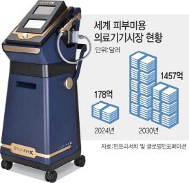 7일 시장조사업체 빈쯔리서치와 글로벌인포메이션에 따르면 세계 피부·미용의료기기시장 규모는 2024년 178억달러(약 25조원)에서 2030년 1457억달러(약 202조원)에 달할 전망이다.