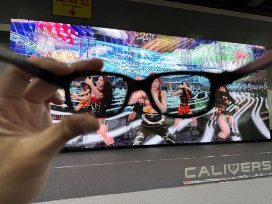 17일 오후 서울 서초구 aT센터에서 열린 '코리아 메타버스 페스티벌 2024'에서 아이돌그룹 '엔믹스'가 메타버스 플랫폼 '칼리버스'에서 공연을 펼치고 있다. 기자 손에 든 3D 안경을 쓰면 공연을 입체 화면으로 즐길 수 있다. /사진=주원규 기자 |