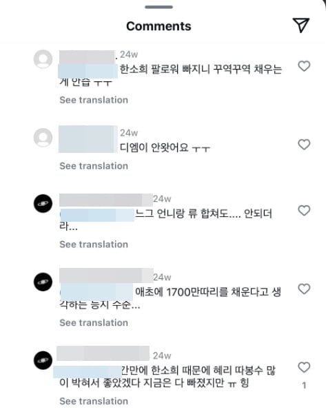 최근 온라인 커뮤니티를 통해 혜리에게 지속적으로 악플을 달고 있는 비공개 계정이 한소희가 만든 비공개 계정이 아니냐는 의혹이 제기됐다. 악플러 계정의 프로필 사진과 과거 한소희가 SNS에 업로드한 사진이 동일하다는 이유 때문이다.