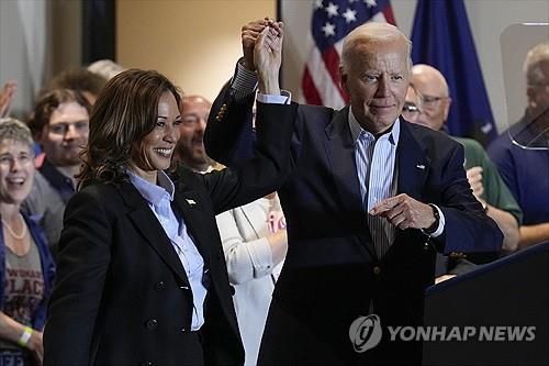 미국 민주당 대선 후보인 해리스 부통령(좌)과 바이든 대통령 |