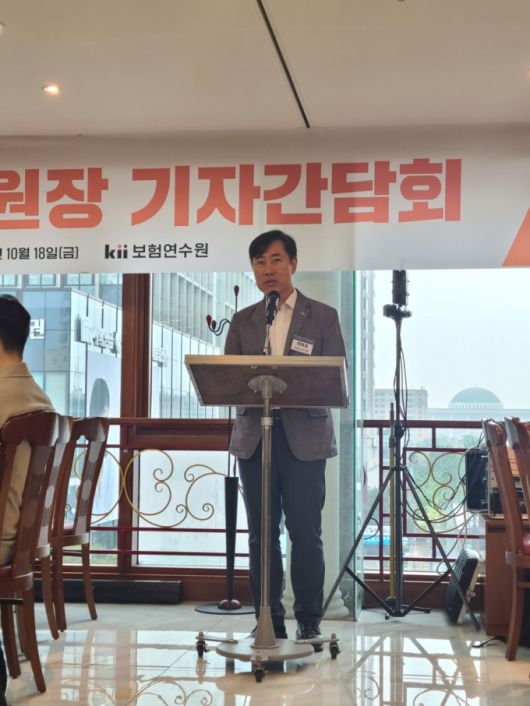 하태경 신임 보험연수원장이 18일 서울 여의도에서 제19대 보험연수원장 취임 50일을 맞아 기자간담회를 열었다./사진=황예림 기자 |
