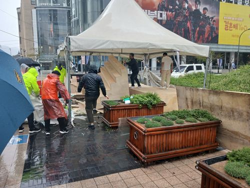 청계광장 분향소 철거하는 중구청 관계자들 |