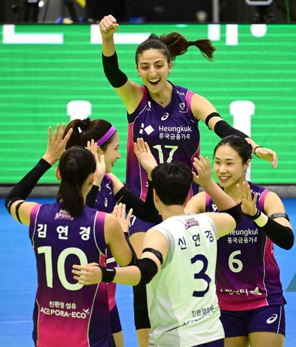 이후 투트쿠, 김연경, 정윤주가 고르게 득점을 보탰고, 흥국생명은 시즌 첫 승리 세리머니를 펼쳤다.