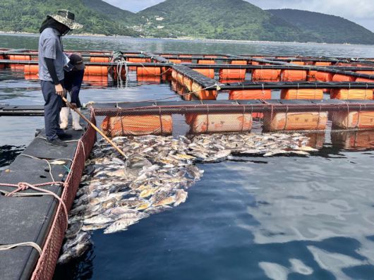 전남도가 저수온, 강풍, 풍랑 등 자연재해로 인한 수산양식 피해에 선제적으로 대응하기 위해 양식어가에 양식수산물 재해보험에 가입할 것을 당부했다. 사진은 고수온으로 피해를 입은 조피볼락 양식장 모습. 전남도 제공 |