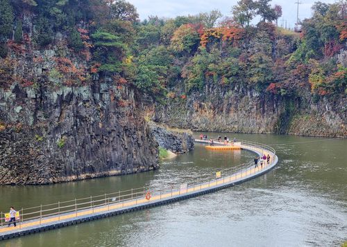 (철원=연합뉴스) 양지웅 기자 = 강원 철원군은 지역 대표 관광지인 한탄강 물윗길 송대소∼은하수교 1.5㎞ 구간을 21일 임시 개방했다.