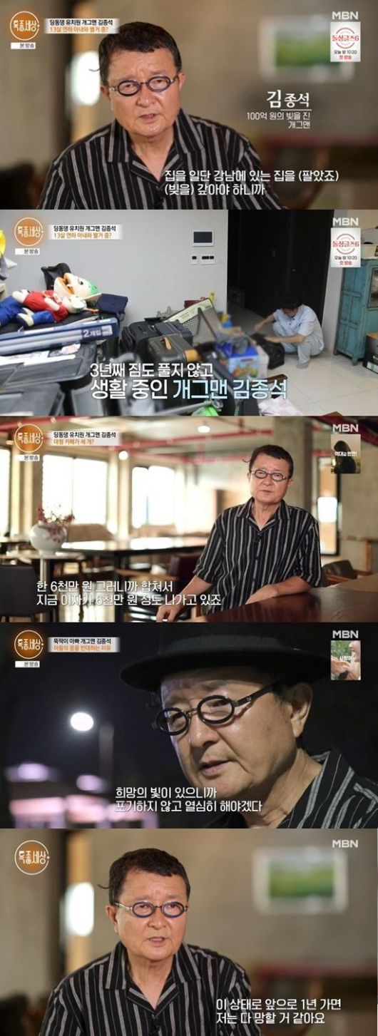 지난 20일 MBN '휴먼다큐 사노라면'에 출연한 김종석은 대형 카페 3군데를 운영 중인 사업가로서, 성공한 모습을 보였다. 현재 빚이 100억 원이긴 하지만, 부동산 자산은 300억 원에 전체 자산이 500억 원이라고 했다. 또 서울 서초구에 집이 있고, 일 때문에 하남시에 집을 구해 살고 있다고도 했다.