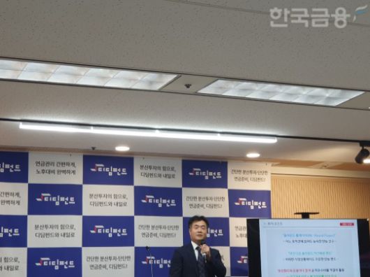 나중혁 대신자산운용 자산솔루션본부장이 22일 오후 서울 여의도 금융투자협회에서 열린 디딤펀드 기자간담회에서 발표하고 있다. / 사진= 한국금융신문(2024.10.22) |